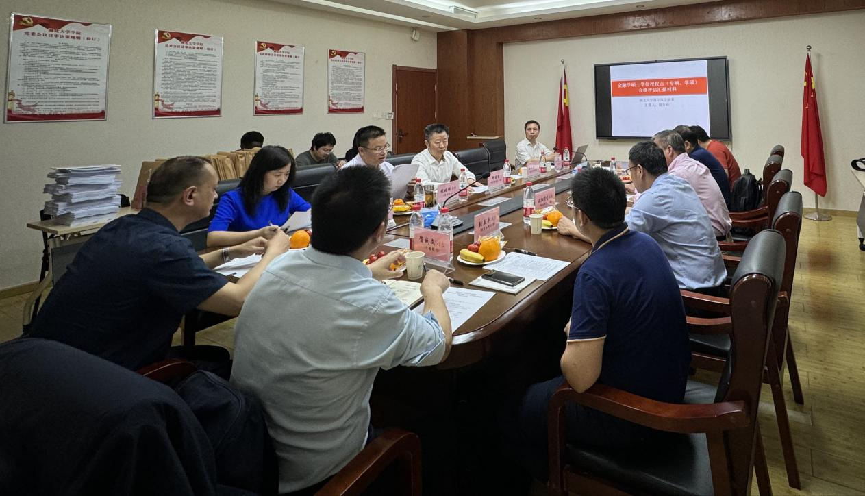 2024年5月11日,湖北大学金融学硕士学位授权点接受了周期性合格评估同行专家现场评估。湖北大学商学院党委书记邵俊青、商学院院长程时雄、楚才学院院长朱小梅、商学院副院长王鸾凤、学位点师生代表参加了此次会议,会议由商学院院长程时雄主持。
